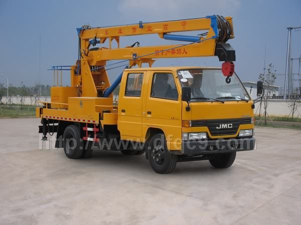 江鈴16米高空作業(yè)車最大作業(yè)高度16米,工作半徑7.1米,工作斗載重200KG,工作平臺可連續(xù)旋轉360度,四個液壓水 平伸展液壓支腿。電控操作,加裝緊急點火熄火裝置。
