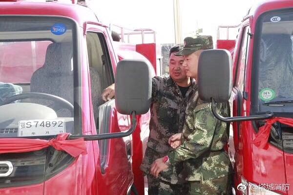 塔城消防支隊(duì)此批消防車為湖北江南專用特種汽車有限公司生產(chǎn),小型消防車采用福田二類底盤加裝罐體及器材廂三部分而成。載液量為2噸,水泵射程為30米,揚(yáng)程50米,帶消防紅警燈。