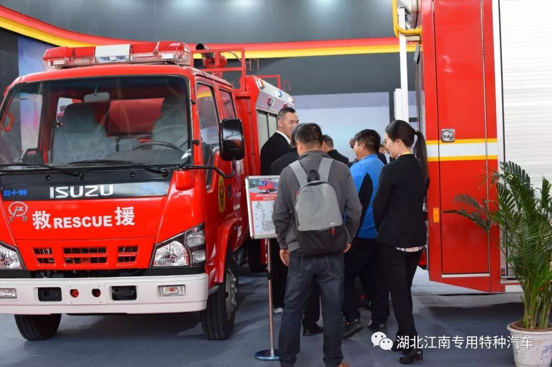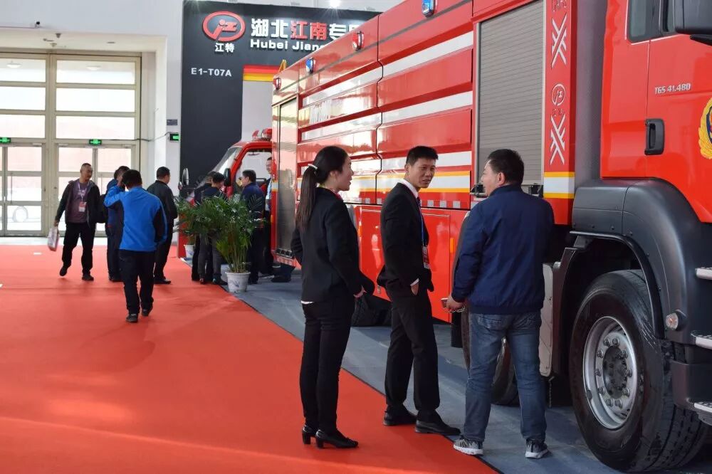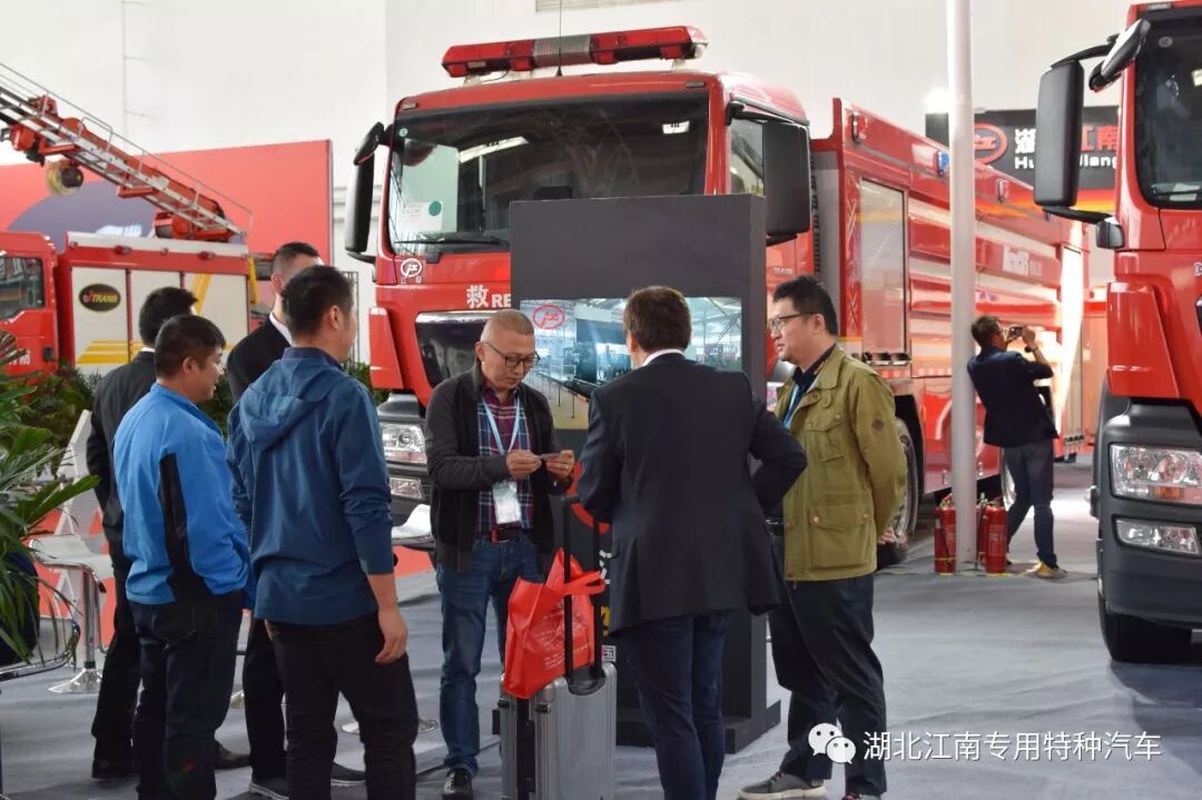 湖北江南汽車公司攜德國(guó)曼大流量壓縮空氣泡沫消防車和國(guó)六慶鈴泡沫消防車亮相展會(huì):